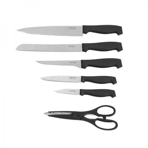 Includes: paring knife, utility knife, boning knife, bread knife, cook's knife and kitchen shears.