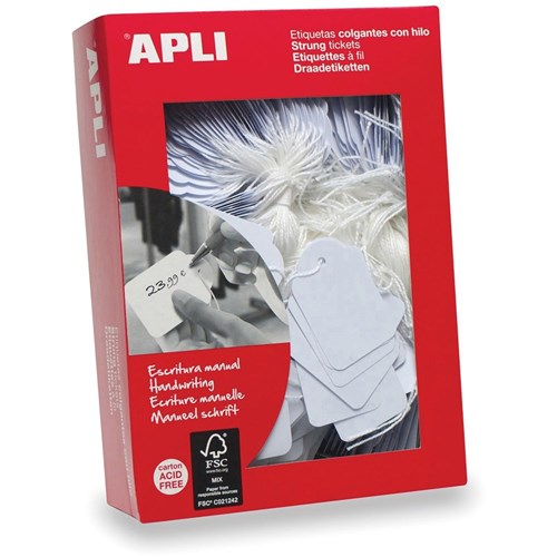 Apli 390 Handwriting Strung Tickets 22 x 35mm White Box Of 500