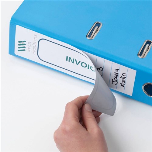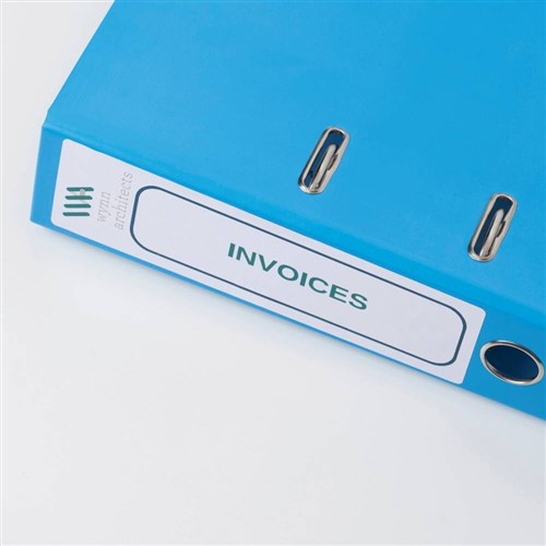 Specially designed labels to fit the spine of lever arch, ring binders, elasticated folders, box files, suspension files, document wallets and square cut folders.