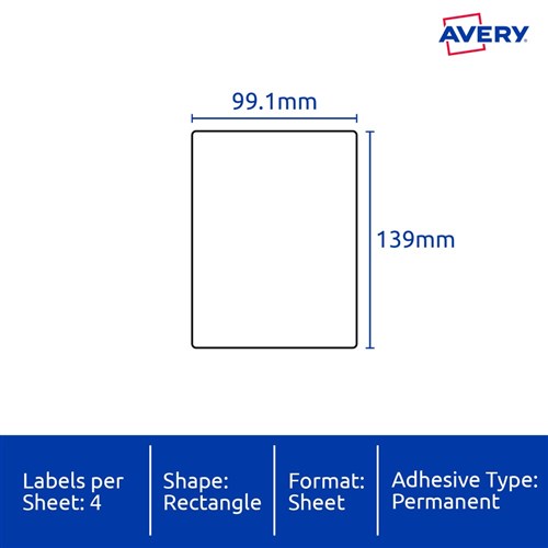 Size: 99.1x139mm 100 labels, 25 sheets. 4 labels per sheet (4UP).