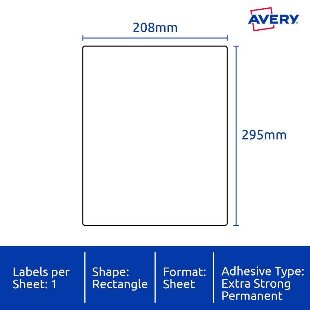 Avery Identification Laser Ultra Resistant White L7917 208x295mm 1UP 10 Labels