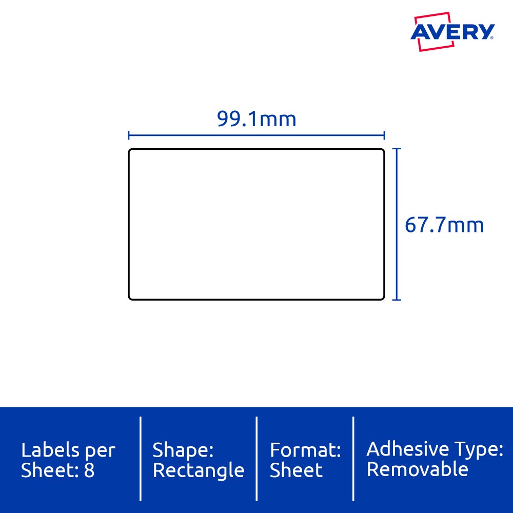 Size: 99.1x67.7mm 160 labels, 20 sheets. 8 labels per sheet (8UP).