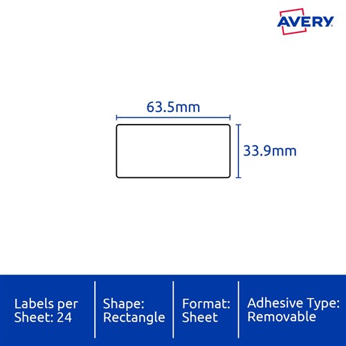 Size: 63.5x33.9mm 480 labels, 20 sheets. 24 labels per sheet (24UP).
