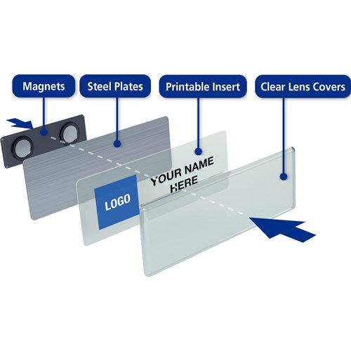 Name badges can be used and reused for every occasion by simply replacing inserts.