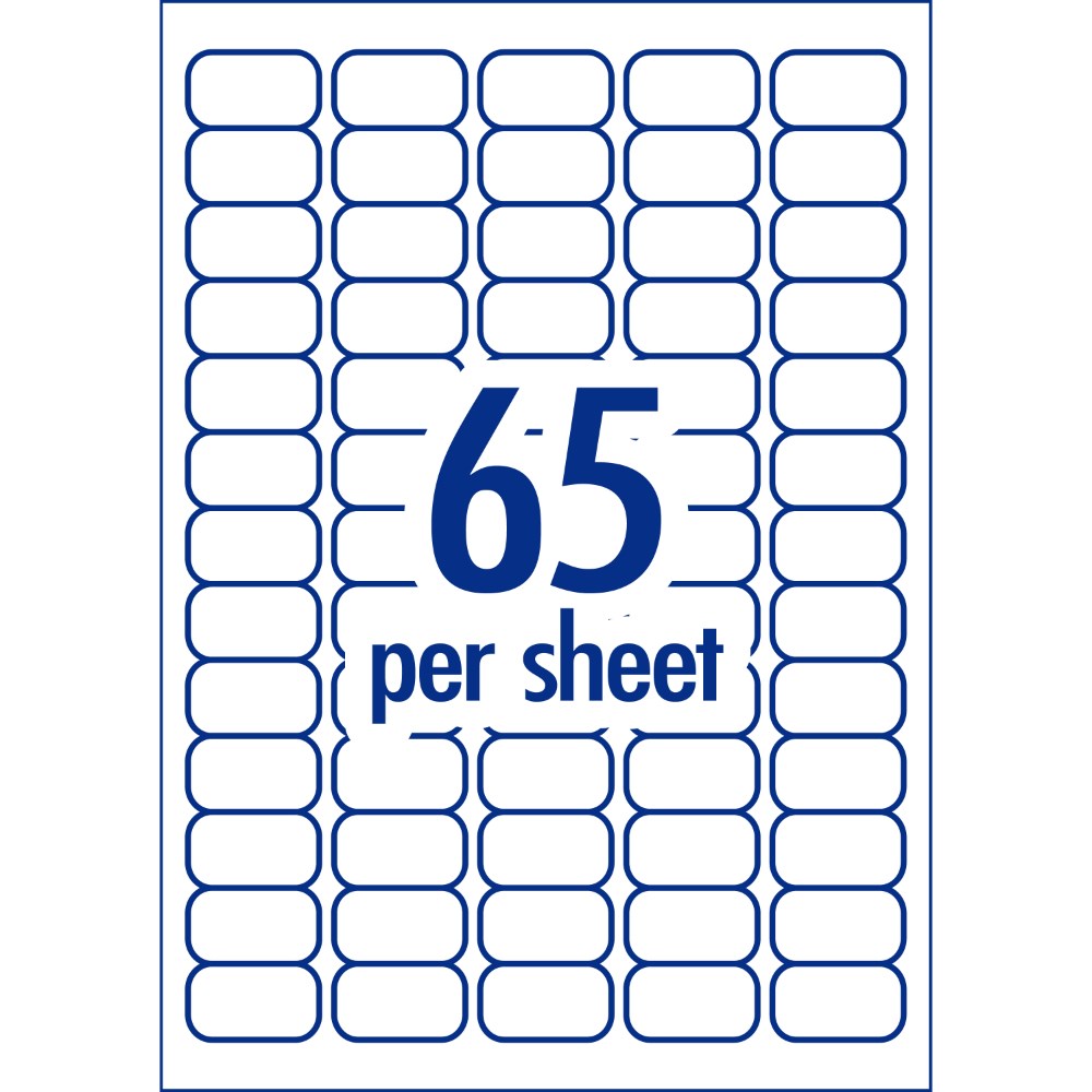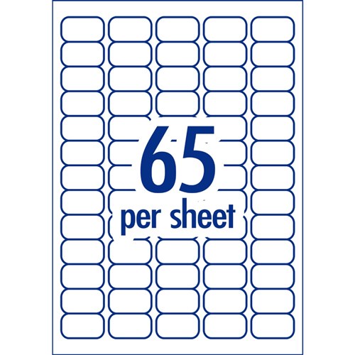 Size: 38.1 x 21.2mm, 3250 labels, 50 sheets, 65 labels per sheet (65UP).