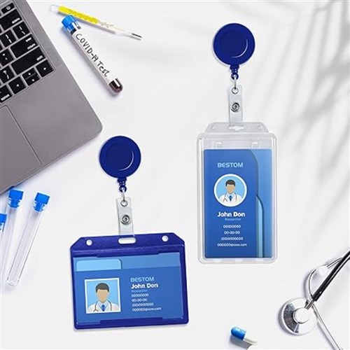Includes a sturdy retractable reel, split ring, and clear card strap. Perfect for securely displaying ID badges, access cards, name tags or security passes. Ideal for office staff, school faculty, event organisers, medical personnel and more.