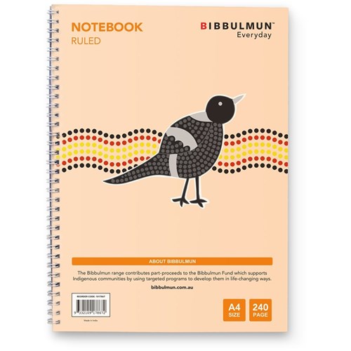 Bibbulmun Spiral Notebook A4 Ruled 7mm Side Bound 240 Page