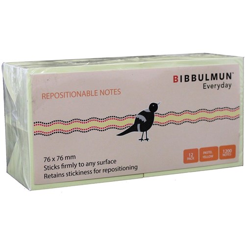 Bibbulmun Sticky Notes 76 x 76mm Yellow 100 Sheets Pad Pack of 12