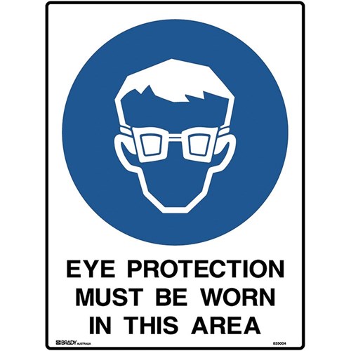 Brady Mandatory Sign Eye Protection Must Be Worn 450W x 600mmH Poly White/Blue
