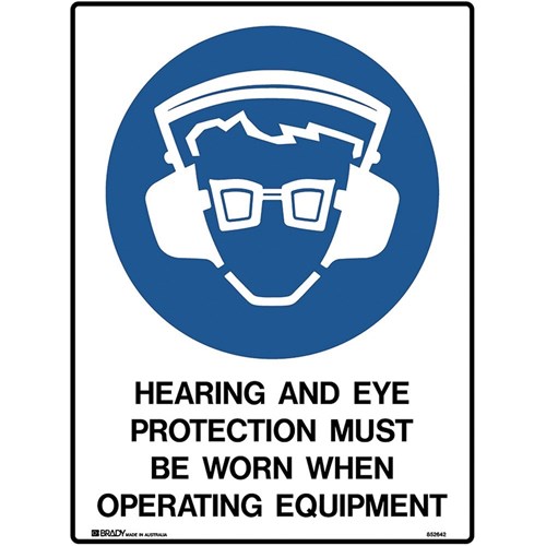 Wording: Hearing And Eye Protection Must Be Worn When Operating Equipment.