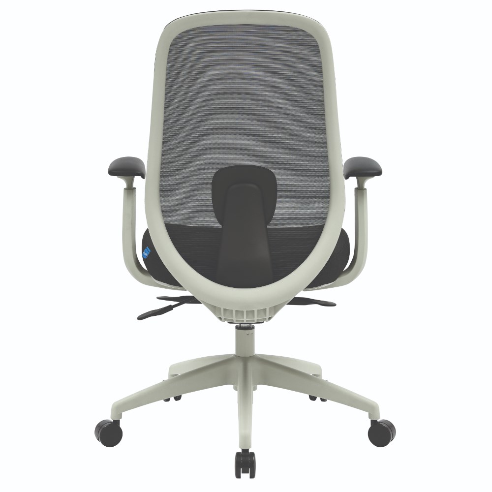 Buro Force High Back Office Chair + Arms Light Grey Frame Black Fabric Seat Mesh Back