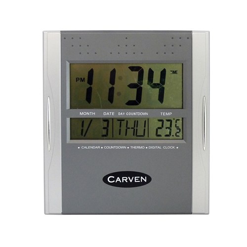 Carven Desk Or Wall Clock 21cm Wide With Date And Temperature Silver