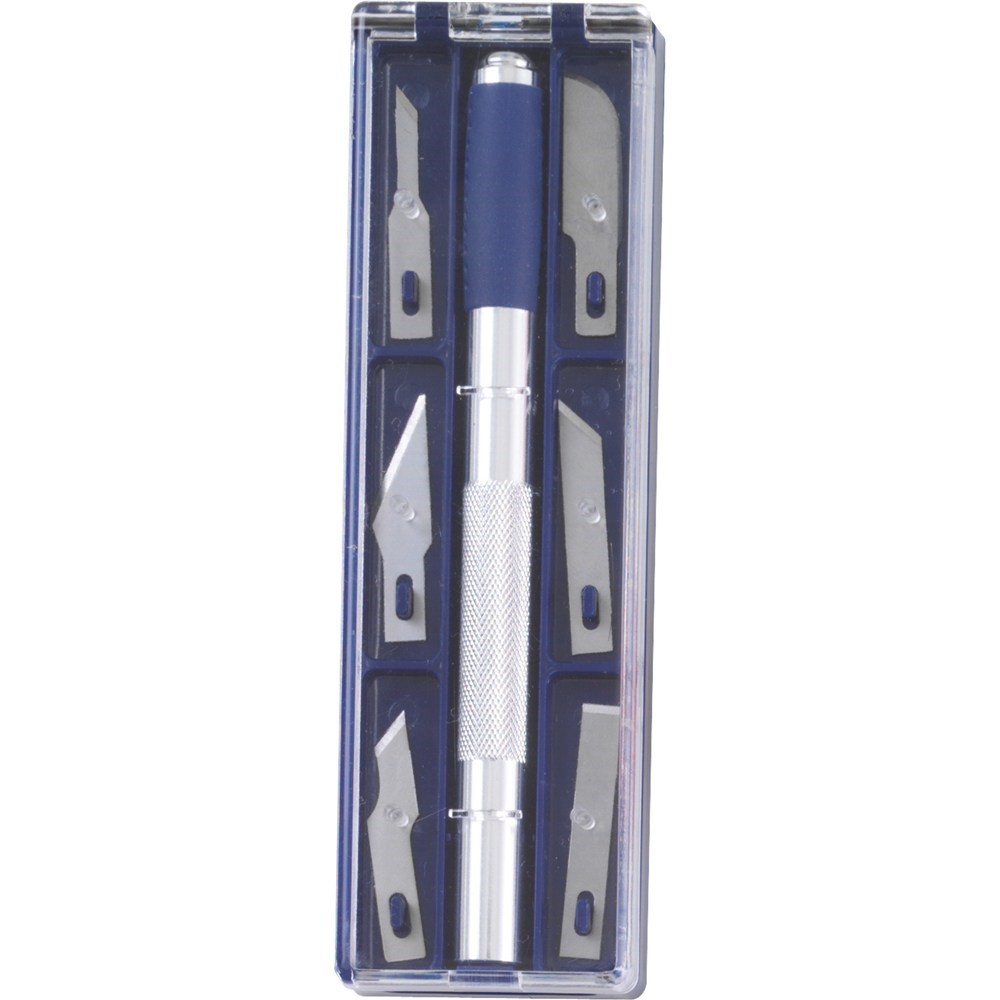 Includes 6 x blades and aluminium blade handle.