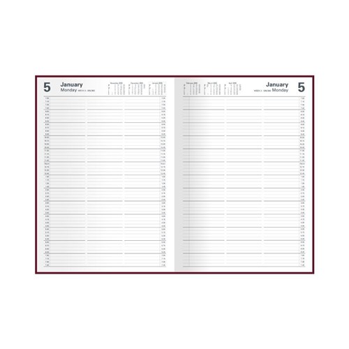 Bound in a soft-look burgundy cover, section sewn for extra strength and with times printed clearly down each page.