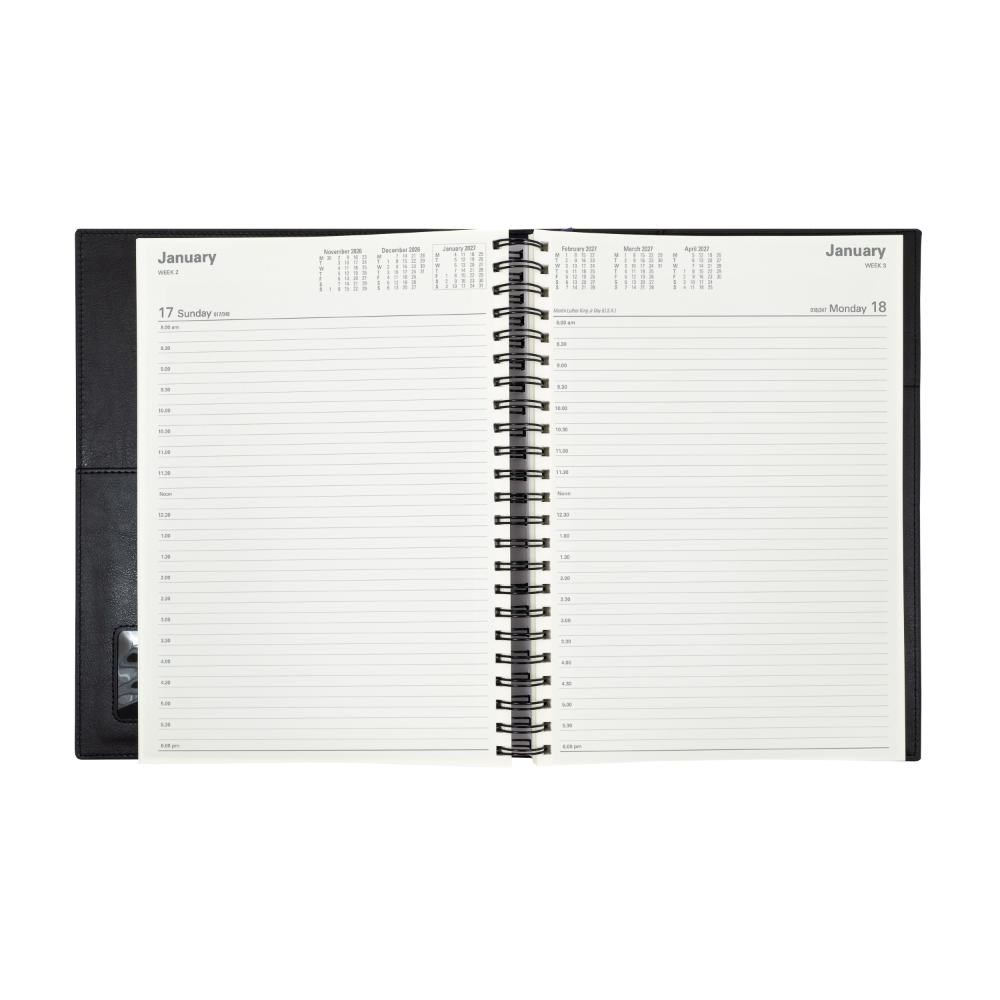 Ideal for those 'on the move' with its double wiro binding and heavily grained metallic and matt PU cover.