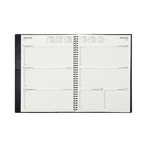 Ideal for those 'on the move' with its double wiro binding and heavily grained metallic and matt PU cover.