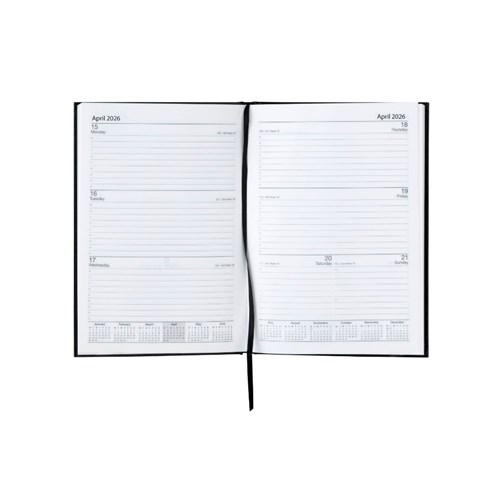 Includes a ribbon bookmarker to mark significant dates, events, or entries within the diary.