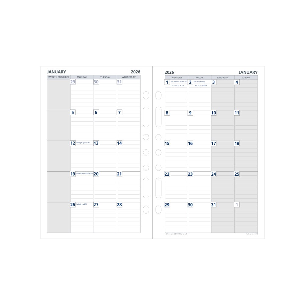 Collins refills will fit most leading brand organisers of a smaller size.