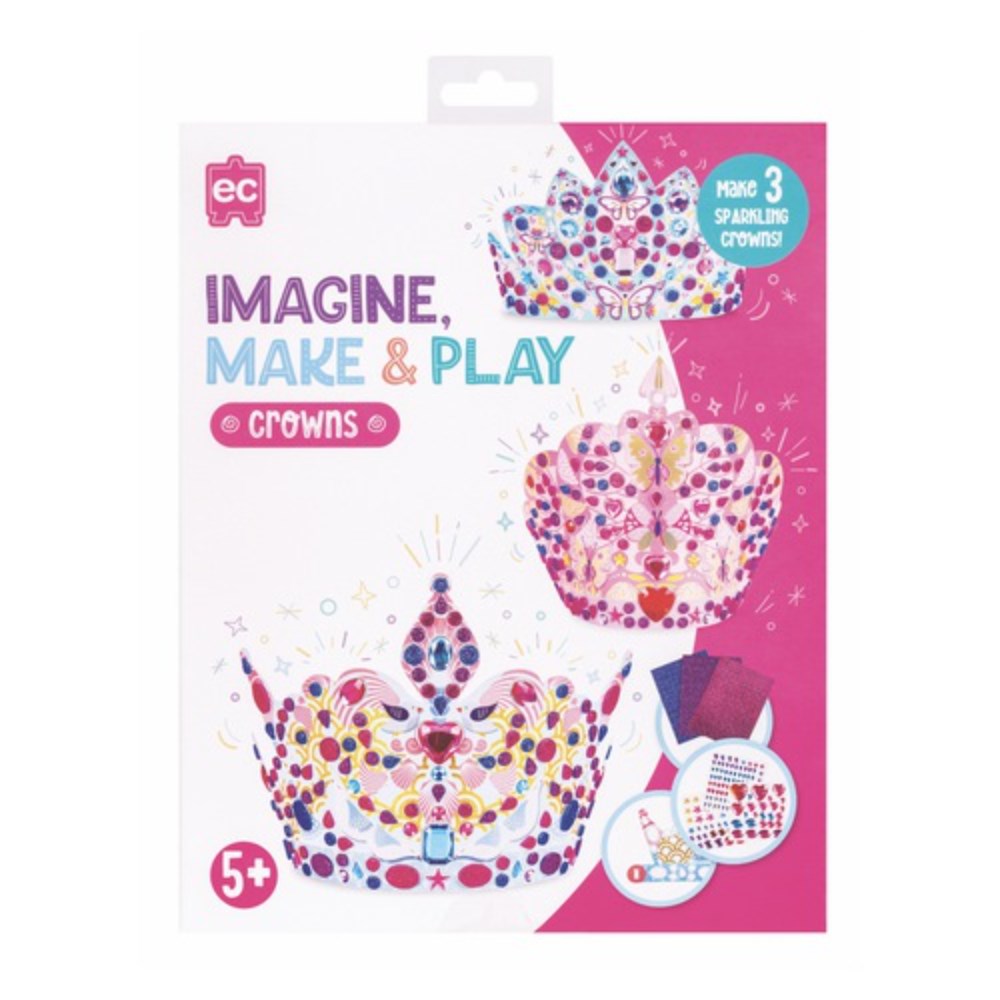 Create beautiful crowns with this gorgeous set. Follow the simple instructions to customise and design three unique crowns with glittery stickers and sparkly gems. Let your creativity soar as you imagine, make and play.