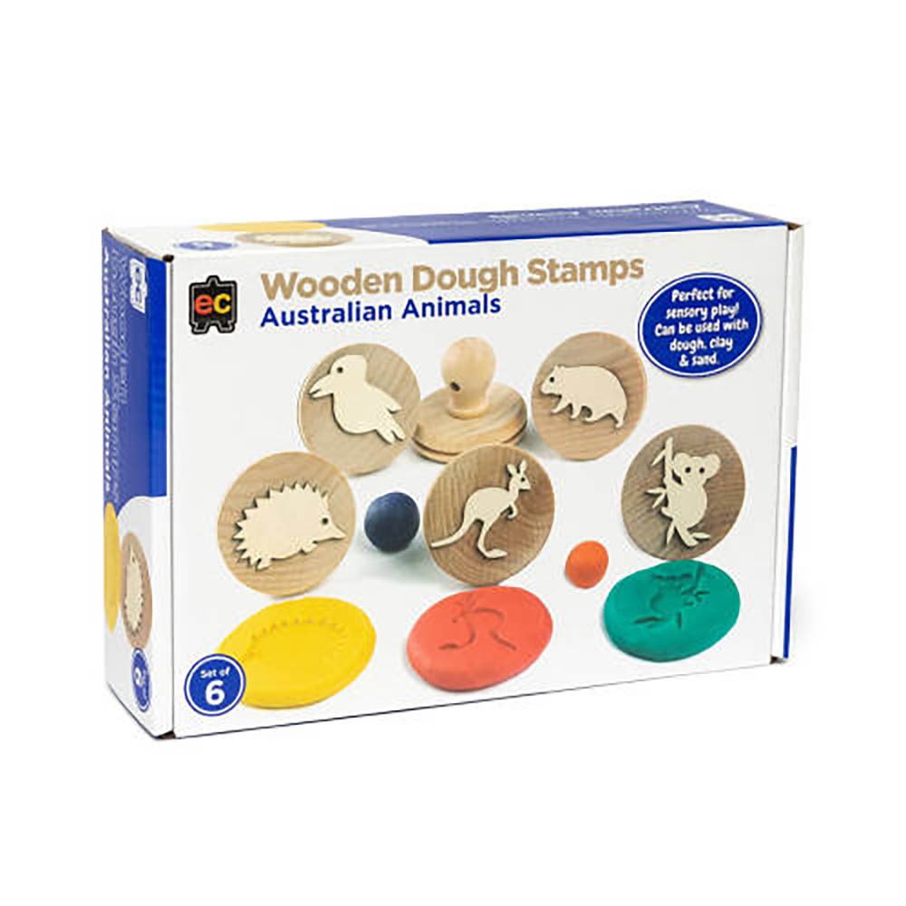 Educational Colours Wooden Dough Stamps Australian Animals Set Of 6