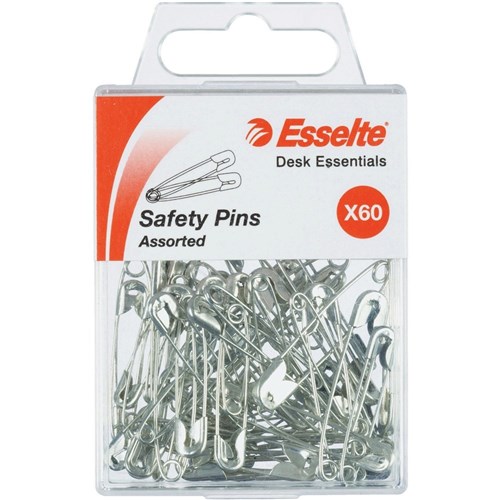 Esselte Safety Pins Assorted Sizes Silver Pack Of 60