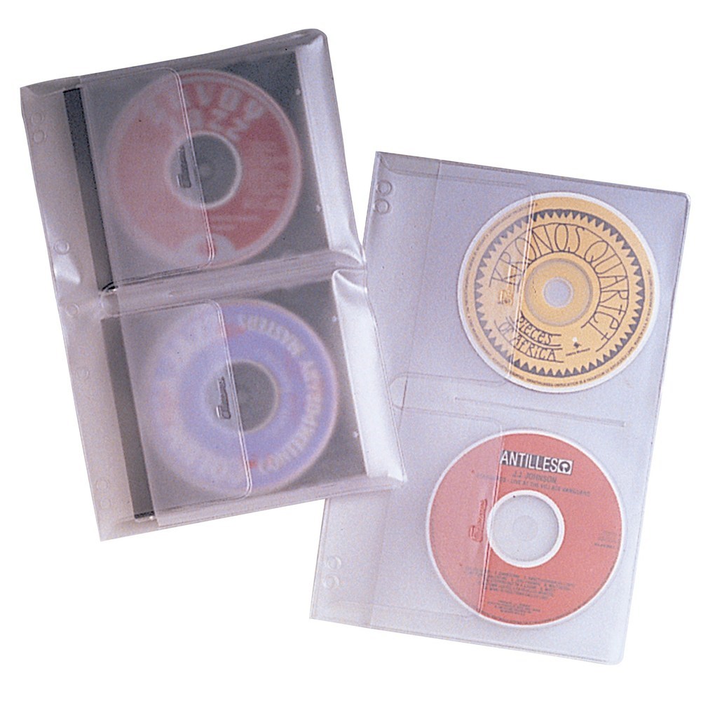 Each loose-leaf binder sheet holds 2 CDs/DVDs in jewel cases.