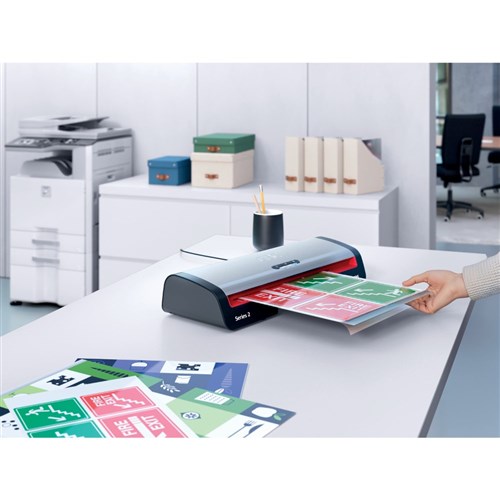 Laminates an A4 document (75 mic) in just 36 seconds and is compatible with GBC high-speed pouches.