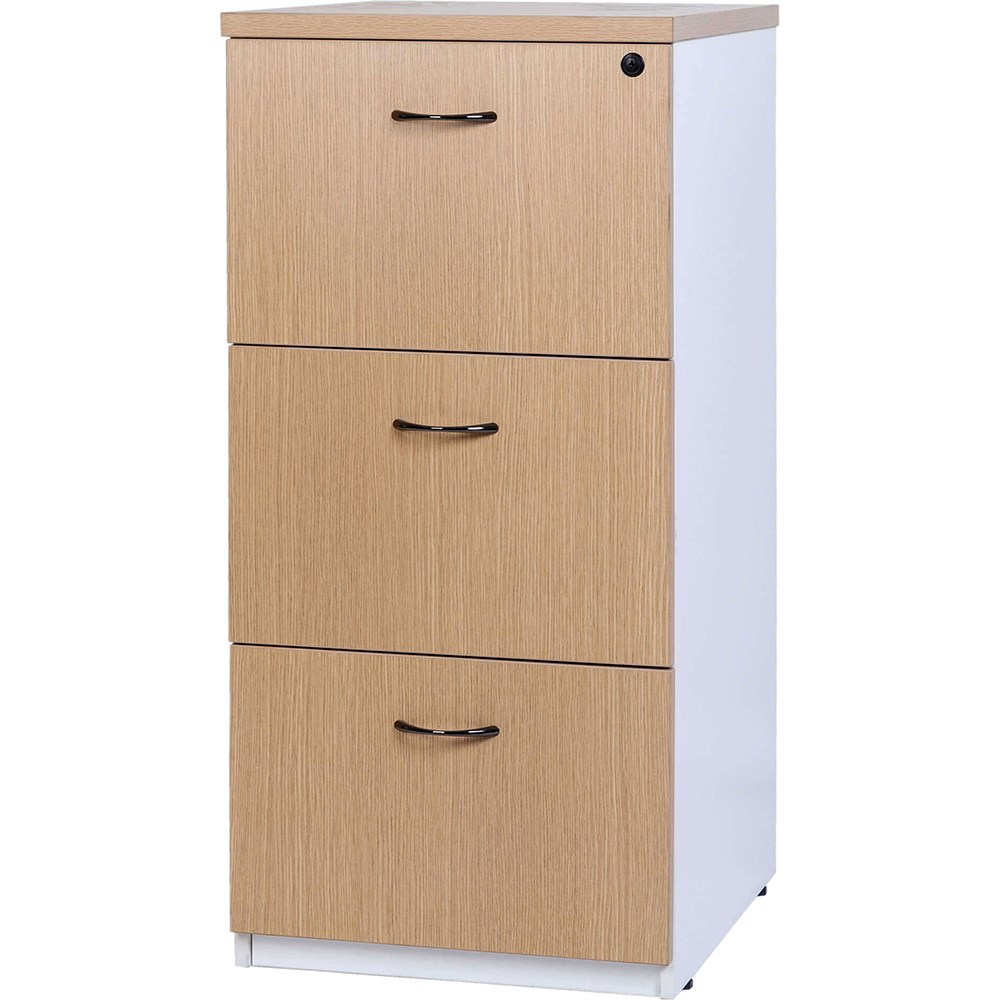 Logan Filing Cabinet 3 Drawer 476W x 550D x 1029mmH White And Oak