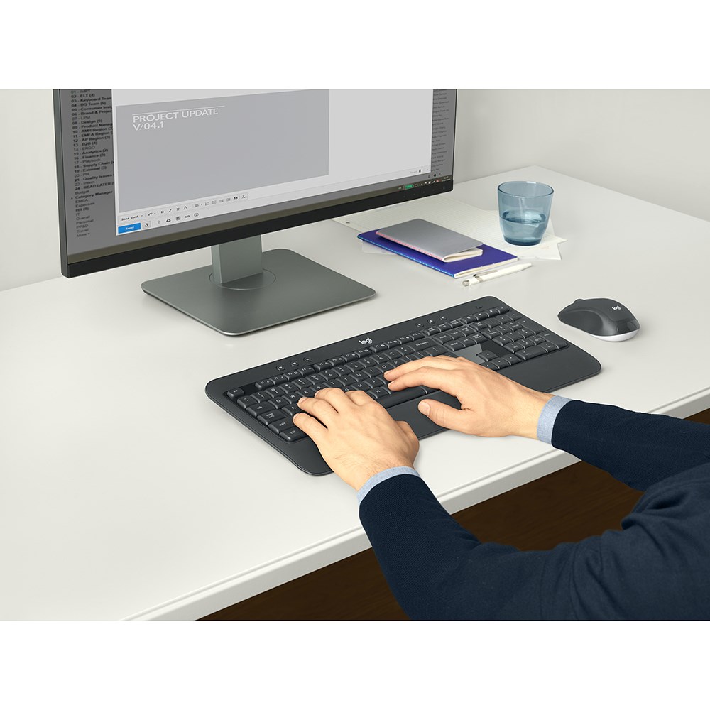 The MK540 Advanced is an instantly familiar wireless keyboard and mouse combo built for precision, comfort, and reliability.