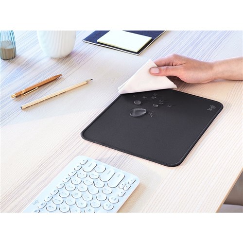 Logitech Mouse Pad features a spill-proof coating that withstands accidental mishaps, so liquids can easily be wiped away.