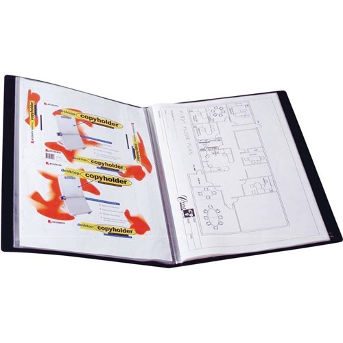 Display book with insert front cover and insert spine label to personalise your presentation.