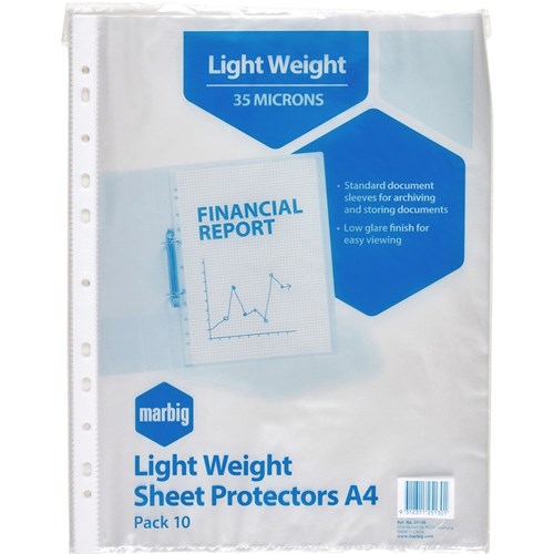 Marbig Sheet Protectors A4 Economy Low Glare Clear Pack Of 10