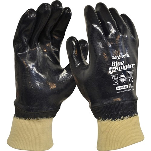 Maxisafe Blue Knight Nitrile Fully Dipped Gloves With Knit Wrist Extra Large Black