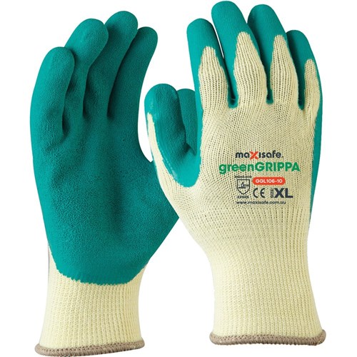 Maxisafe greenGRIPPA Gloves Latex Dipped Palm And Knitted Poly Cotton Small Green