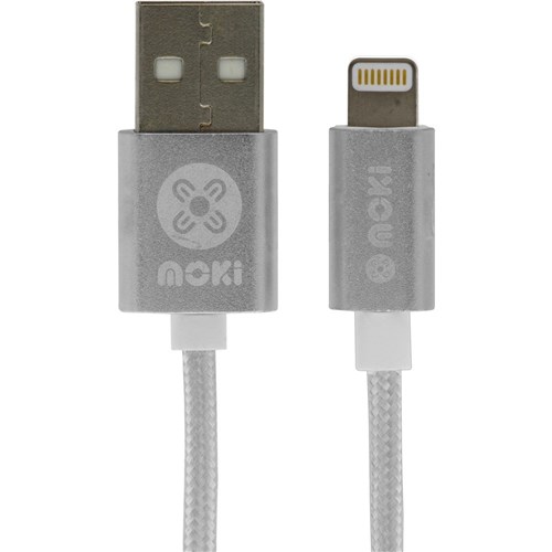 Moki USB To Lightning SynCharge Cable 90cm Braided Silver