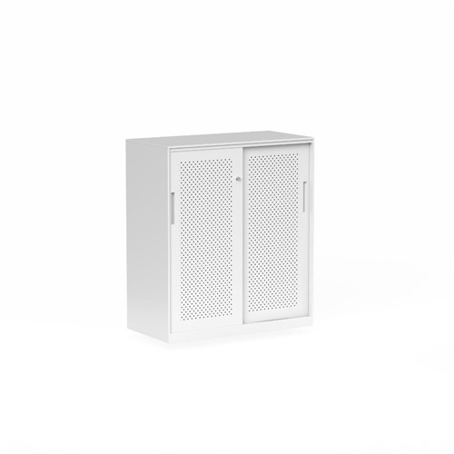 Sliding doors allow easy access while maintaining a sleek, modern appearance, perfect for storing documents, samples and office essentials.