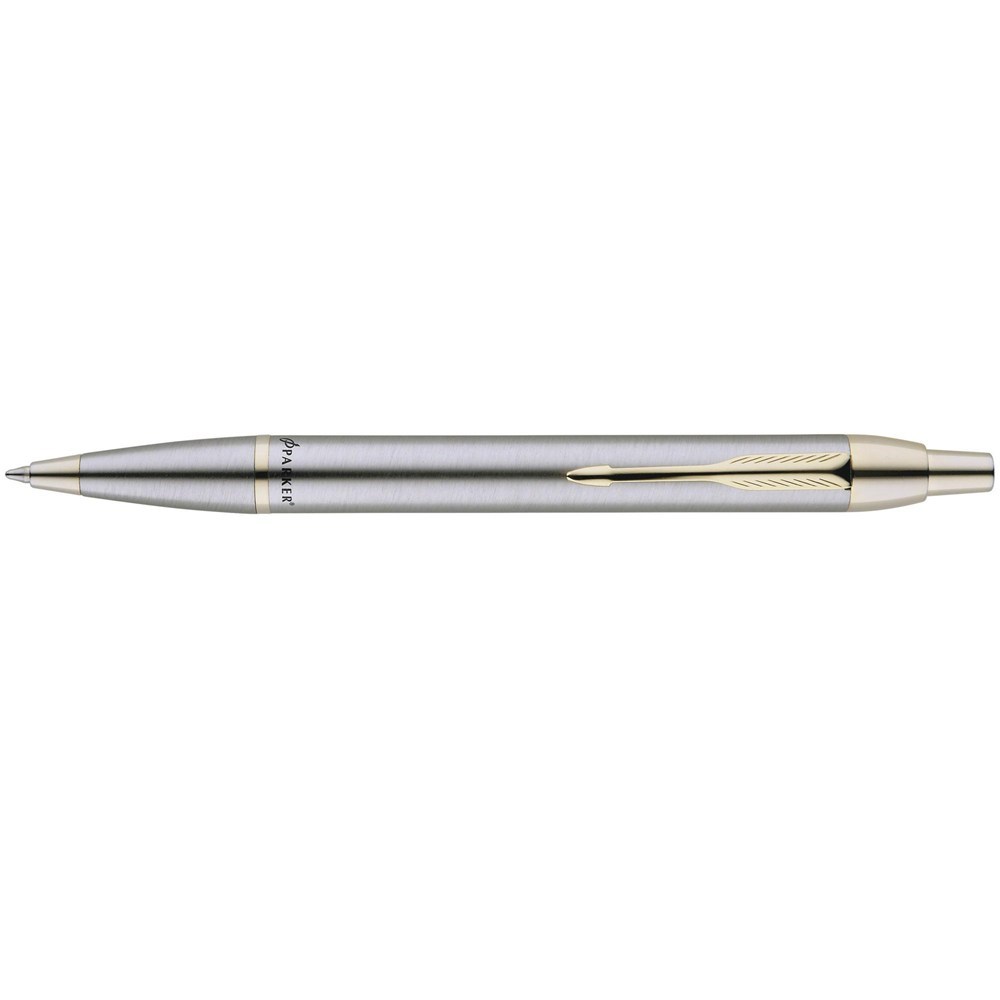 Parker IM Ballpoint Pen Retractable Brushed Metal Gold Trim Stainless Steel Hangsell