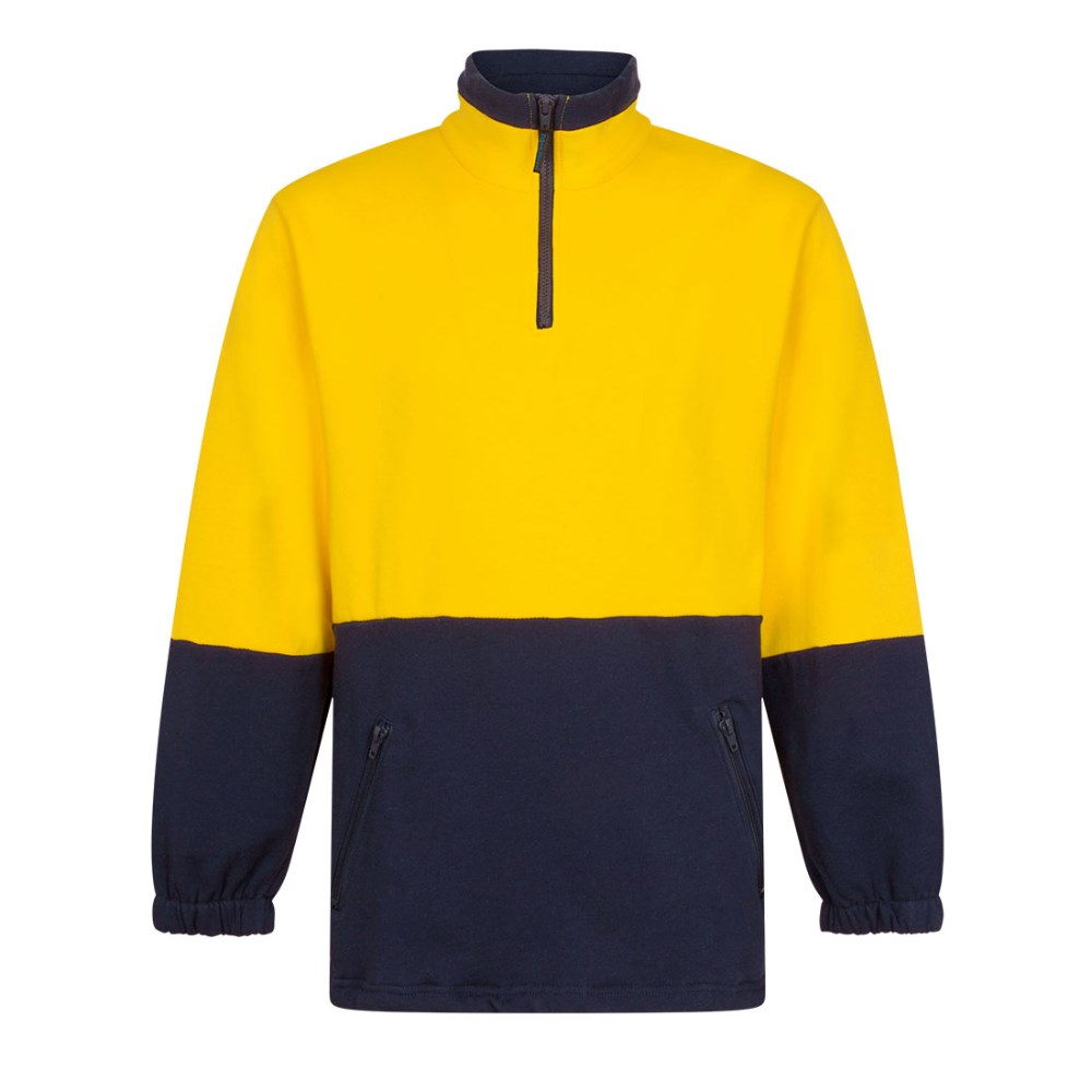 Portwest Hi-Vis Contrast 1/4 Zip Class D Brush Fleece Jumper 5XL Yellow And Navy
