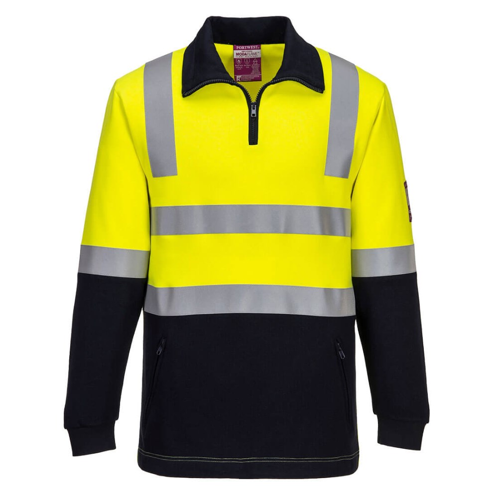 Portwest Modaflame Fire Resistant Day Night Brushed Fleece Jumper 4XL Yellow/Navy