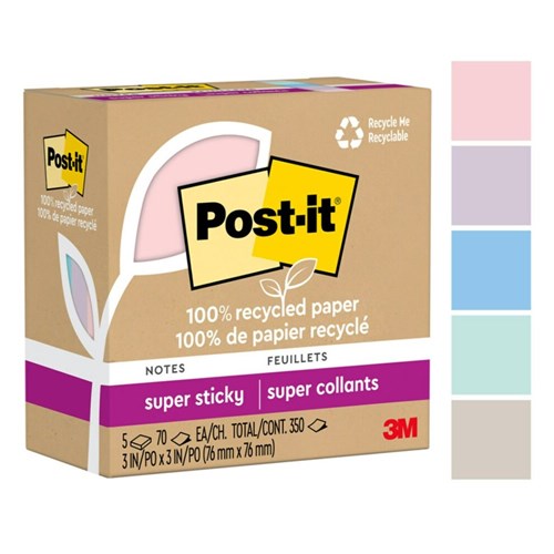 Post-It 654R-5SSNRP Super Sticky Notes 76mm x 76mm Wanderlust Pastels Pack Of 5