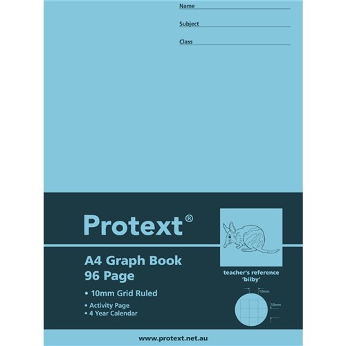 Protext Graph Book A4 10mm Squares 48 Page 70gsm Poly Cover Dolphin