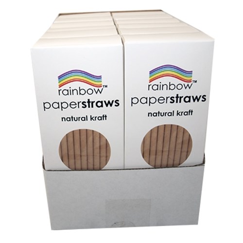 Rainbow 8mm Paper Straws Natural Pack Of 50
