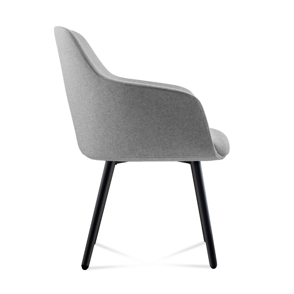 Comfortable seating with upholstered seat and back in a soft fabric. Supported by a sturdy powder-coated steel frame.