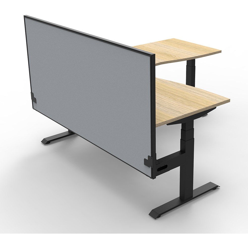 Includes pinnable privacy screen in grey fabric with matching black powder coated frame. 900mm H x 30mm T.