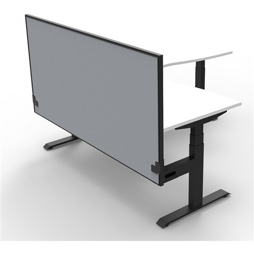 Includes pinnable privacy screen in grey fabric with matching black powder coated frame. 900mm H x 30mm T.