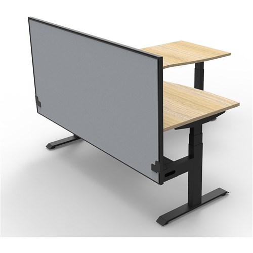 Includes pinnable privacy screen in grey fabric with matching black powder coated frame. 900mm H x 30mm T.