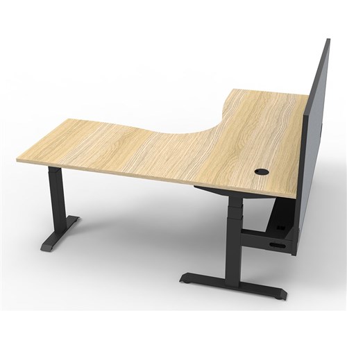Dual Motor 3 stage motorised legs. Corner Workstation with Cable Tray and Screen.