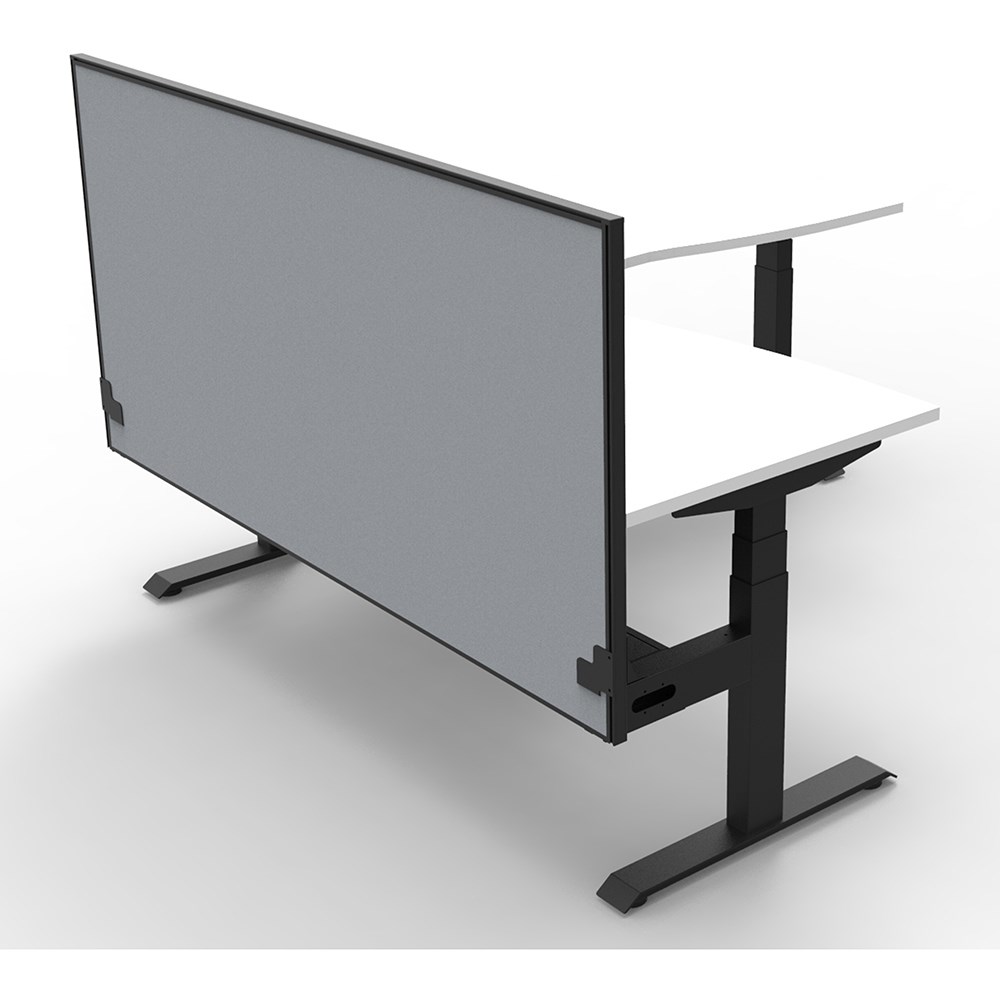 Includes pinnable privacy screen in grey fabric with matching black powder coated frame. 900mm H x 30mm T.
