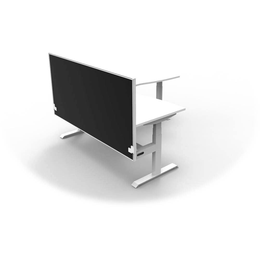 Includes pinnable privacy screen in black fabric with matching white powder coated frame. 900mm H x 30mm T.