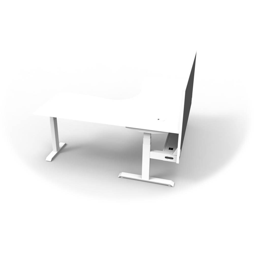 Dual Motor 3 stage motorised legs. Corner Workstation with Cable Tray and Screen. 140kg weight loading capacity.